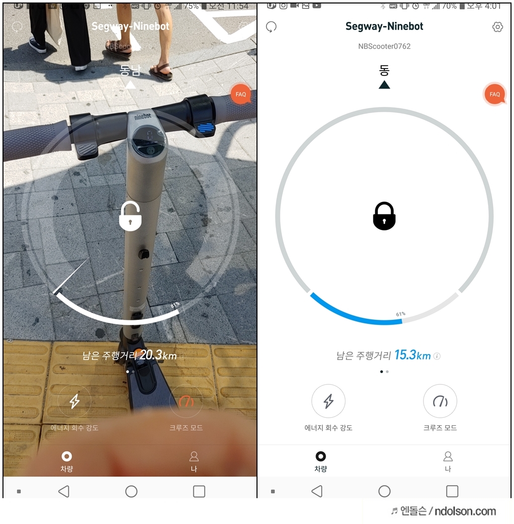 2. 나인봇 앱으로 모든 연동가능 (심지어 자물쇠가 필요 없는 잠금까지 가능)