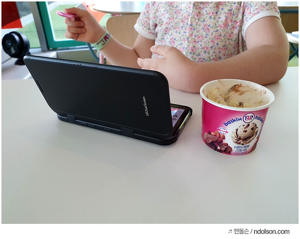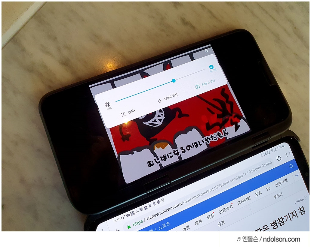 밥 먹을 때 아이들에게 키즈채널을 보여주는 데, 정작 부모는 스마트폰을 빼긴 기분입니다. 화면이 2개니깐 반대쪽에서 보고 싶은 데 방법이 없을까요? 가능합니다.