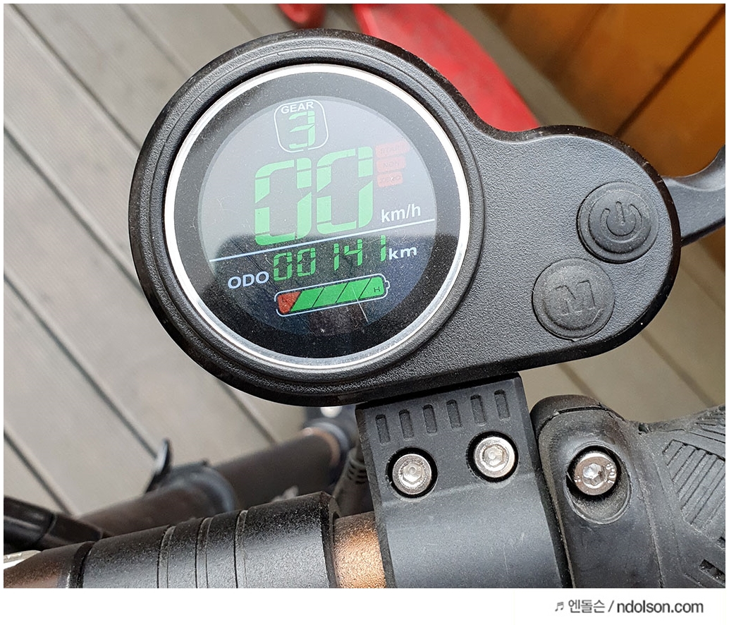 크루즈 모드가 없어서 아쉽지만, 1단/2단/3단으로 속도 조절이 가능하며, 최대 35KM의 빠른 주행이 가능합니다. 다운힐에서는 거의 40km까지 최대 속도가 나오기도 합니다. 하지만 속도가 많이 나오는 게 중요한 게 아니라 15도 등판이 가능하다는 것입니다.