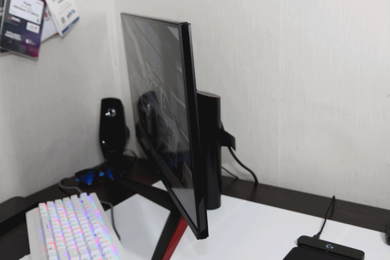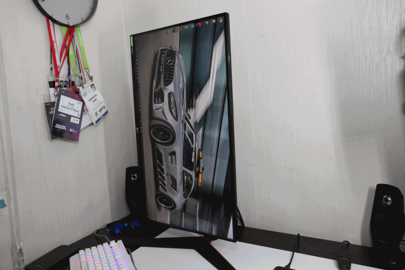 회전되는 피벗(Pivot)이 가능한 모니터로 직캠 영상이나 세로 모니터로 사용할 수 있습니다. 또 사용자의 높낮이에 따라 자유롭게 조정이 가능합니다.