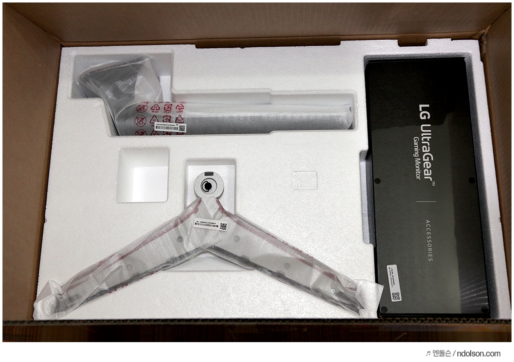 모니터 패키지 안쪽의 스티로폼 틀 안에 또 개별 포장되어 있어 스크래치 없이 제품을 배송받을 수 있었습니다.