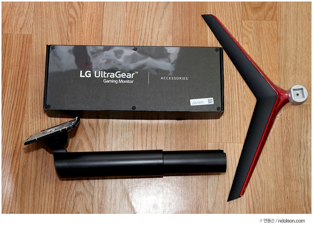 LG 울트라기어 모니터 액세서리 킷이 별도로 모아져 있습니다. 또 회전 모니터가 가능한 모니터 받침대가 들어 있습니다.