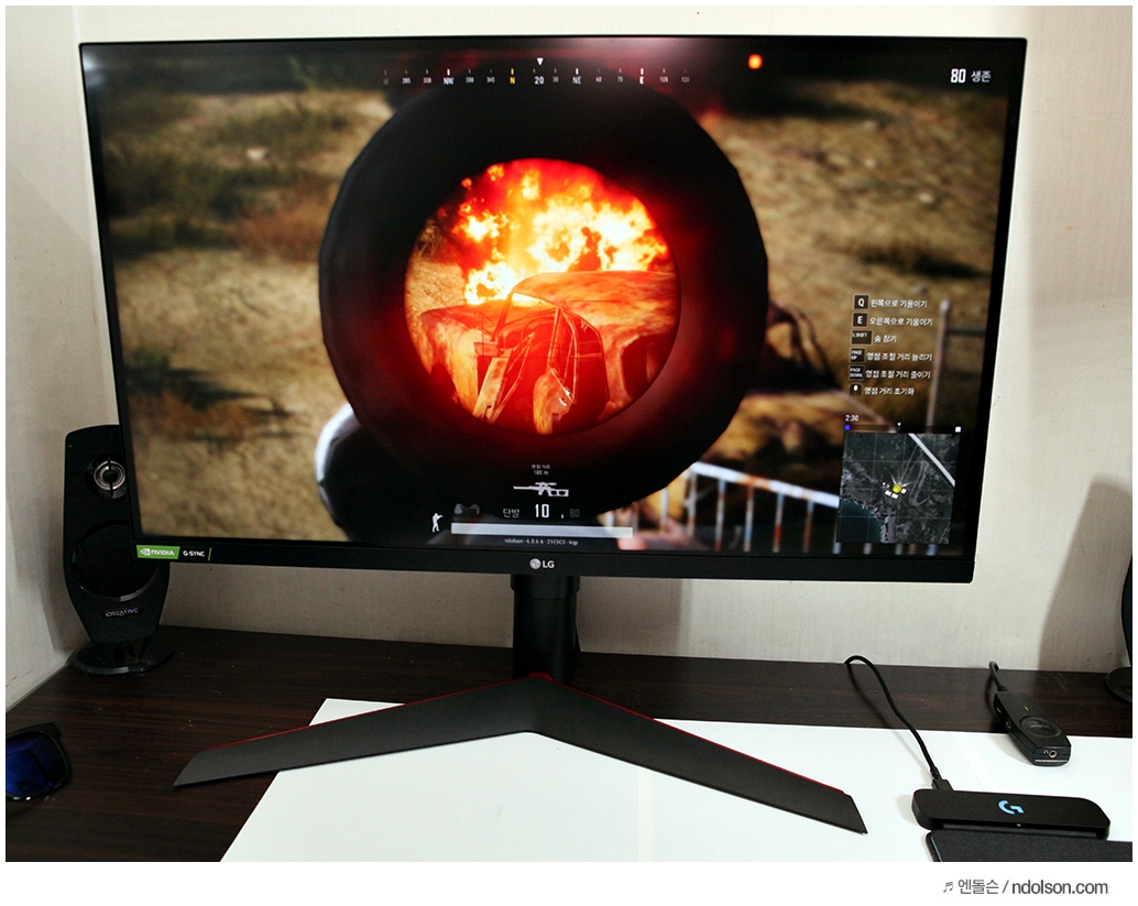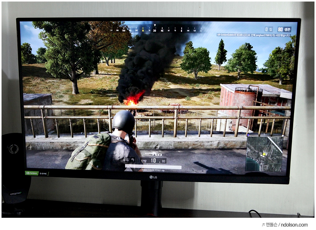 정말 역대급 모니터로 VA, TN모니터보다 화질이 매우 우수하게 느껴졌습니다. 배틀그라운드의 멀리에 있는 적도 선명하게 구별이 가능했고, 빠른 반응속도를 요구하는 배틀그라운드 게임을 하기에 좋았습니다.