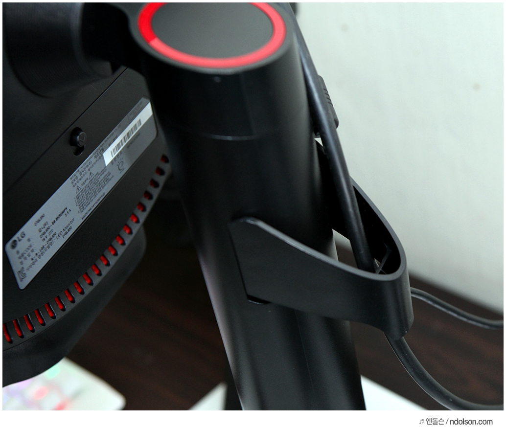 모니터와 컴퓨터 본체를 연결한 선이 책상에 지저분하게 보이지 않게 별도의 액세서리를 제공하여 선정리를 깔끔하게 할 수 있습니다.
