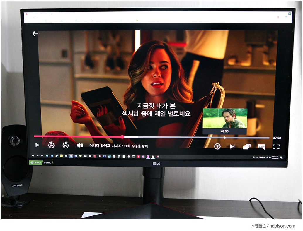 저는 넷플릭스로 영화/드라마 보는 것을 즐겨 하는데, LG 울트라기어 게이밍모니터 27GL850의 HDR10과 HDR 모드를 지원하기에 보면 영화 보기에 적합한 화면 색감을 보여줍니다. 또 블랙은 희뿌연 회색이 아닌 진짜 검은색으로 전달하는 27GL850은, 무려 350nits 밝기 구현과 DCI-P3 98%라는 놀라운 스펙을 바탕으로 우수한 색채감을 보여줍니다.