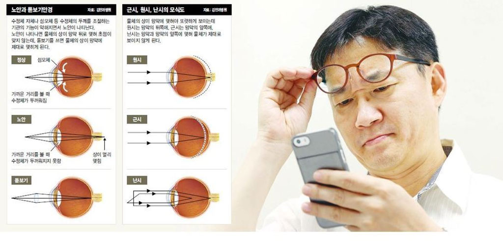 사회적 현상으로 스마트폰을 쓰지 않으면 또 빠르게 정보를 찾거나 혜택을 누릴 수 없기 때문에 포기할 수도 없는데요. 이 스마트폰 때문에 많이들 눈이 나빠지고 있다고 해요. 게다가 위에서 얘기한 것처럼 노안 발생도 빨라지구요.