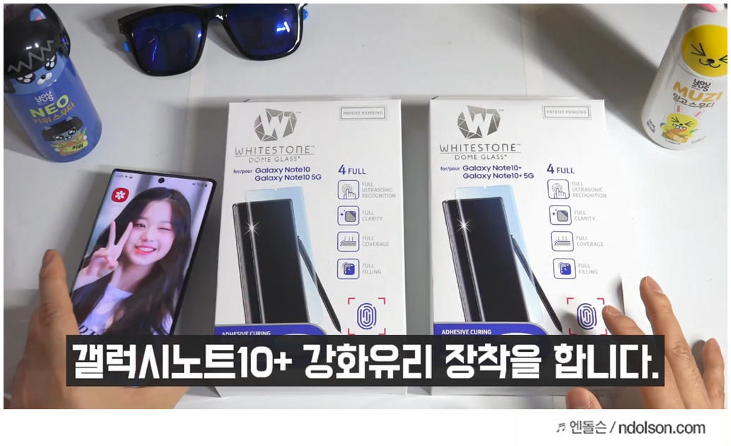 그러면 제가 가지고 있는 갤럭시노트10+ 5G 스마트폰에 화이트스톤 돔글라스를 붙여 보겠습니다. 영상을 꼭 2~3번 보시고 시작하세요!