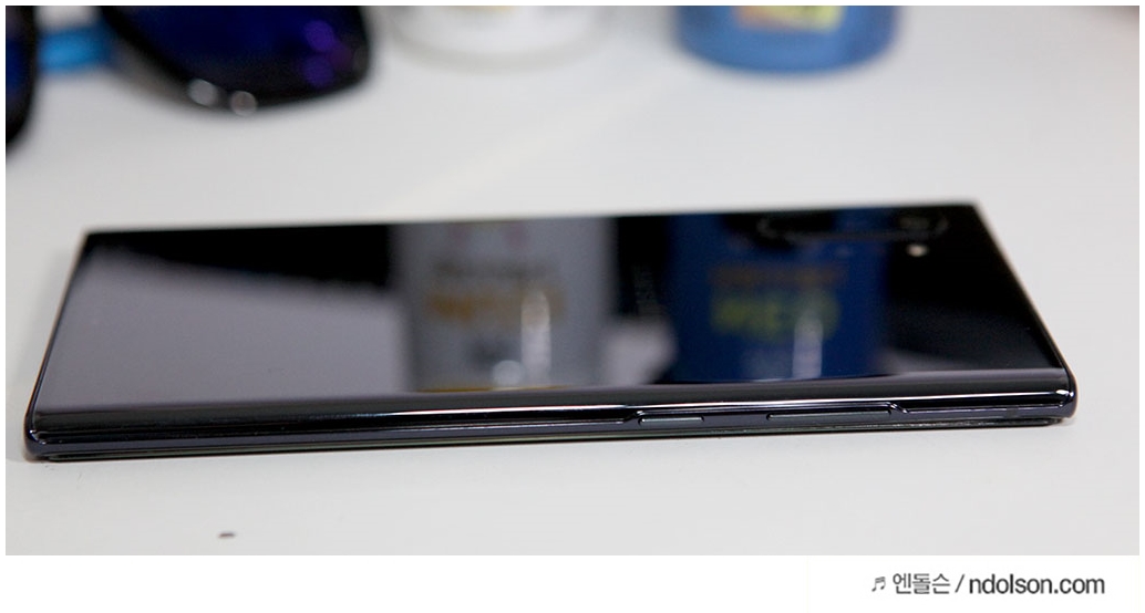갤럭시노트10의 상단에 베젤보다 작게 스피커가 들어 있습니다. 수화기 부분인데, 정말 삼성전자에서 어떻게 노트10을 만들었는지 대단하네요.