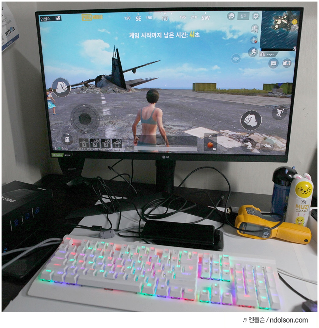최악.. 배틀그라운드는 키보드, 마우스 모두 가능하지마 총쏘우거나 자동차 운전, 맴보기 등은 키보드로 제어가 안되었습니다. 게임은 잘됩니다.