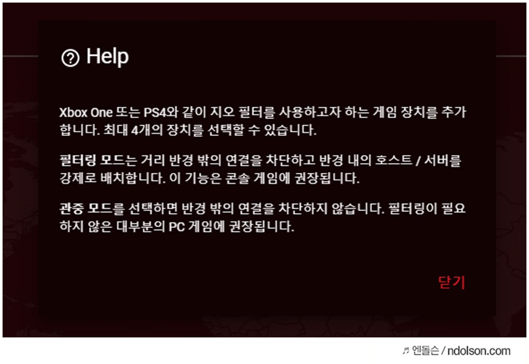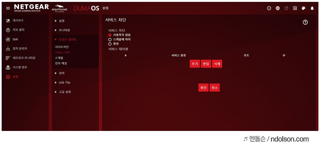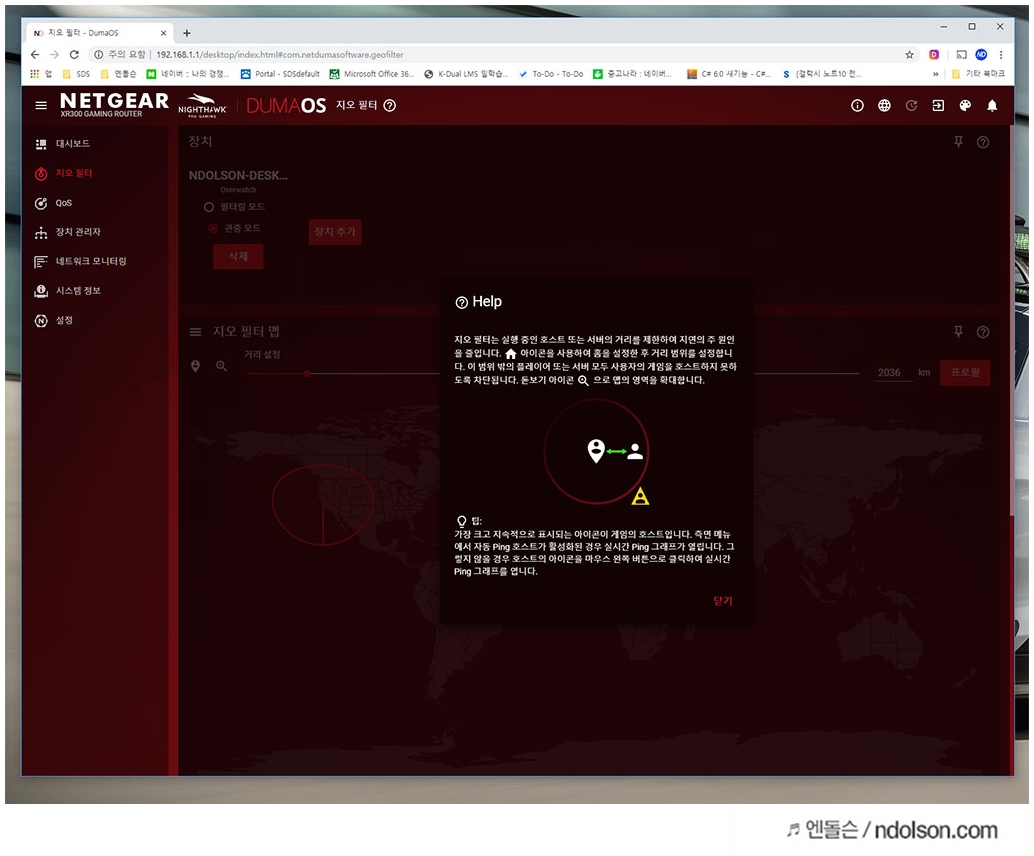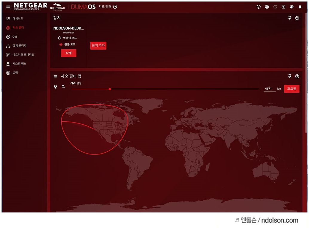 넷기어 나이트호크 XR300 게이밍 공유기 AC1750은 지오 필터(Geo-Filter)를 통해서 접속하는 사용자를 제어할 수 있습니다. 오직 게이밍 라우터를 쓰기 때문에 가능합니다.