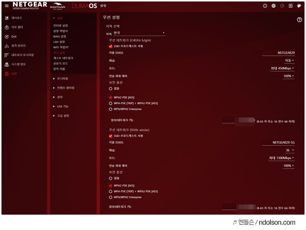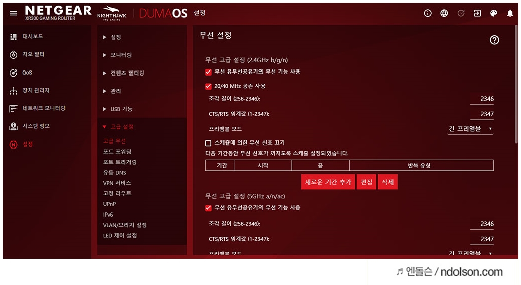 무선 인터넷에 대한 고급기능은 상당히 많았습니다. 역시 전문 게이밍 라우터라 그런지 특화된 기능이 볼만 했습니다.
