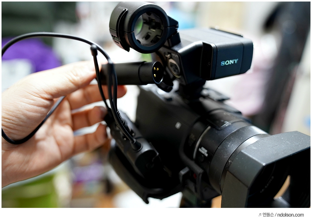 고가의 소니 건마이크를 쓰고 있어서 좋았지만, 문제는 먼거리에서 촬영할 때 필요한 무선마이크가 필요했는데요. 이렇게 샤건마이크에 XLR연결 케이블을 이용하여 장착할 수 있는 어답터가 있어서 좋았습니다.