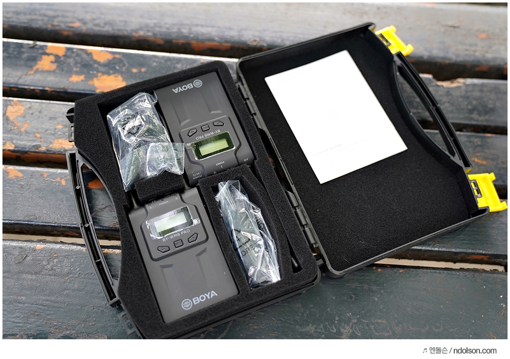 보야 무선마이크(BOYA BY-WM8 PRO-K1)는 전용 하드 케이스를 줍니다. 휴대하거나 보관하기 좋은 케이스가 있어 좋습니다.