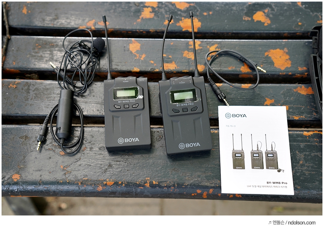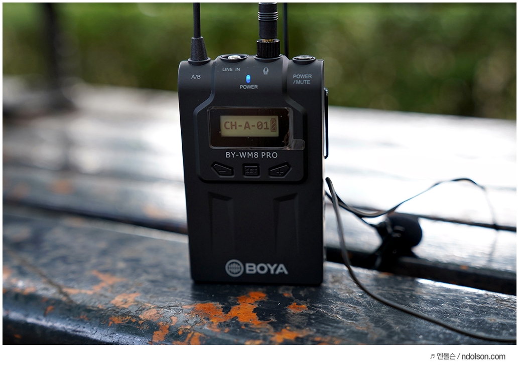 무선마이크 BOYA BY-WM8 PRO-K1와 소니 샷건마이크의 조합으로 사용하였습니다. 가지고 다녀야할 장비와 복잡할 수 있지만, 기존 음질과 음색을 그대로 유지하면서도 원거리에서 영상을 무선마이크로 녹음할 수 있어서 좋습니다.