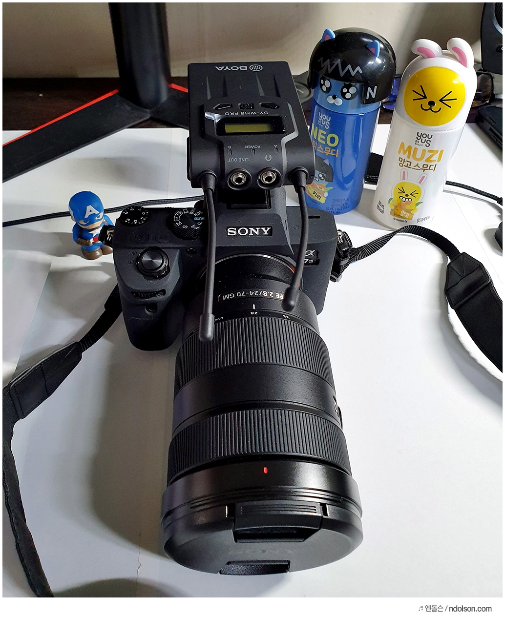 무선마이크 BOYA BY-WM8 PRO-K1와 소니 샷건마이크의 조합으로 사용하였습니다. 가지고 다녀야할 장비와 복잡할 수 있지만, 기존 음질과 음색을 그대로 유지하면서도 원거리에서 영상을 무선마이크로 녹음할 수 있어서 좋습니다.
