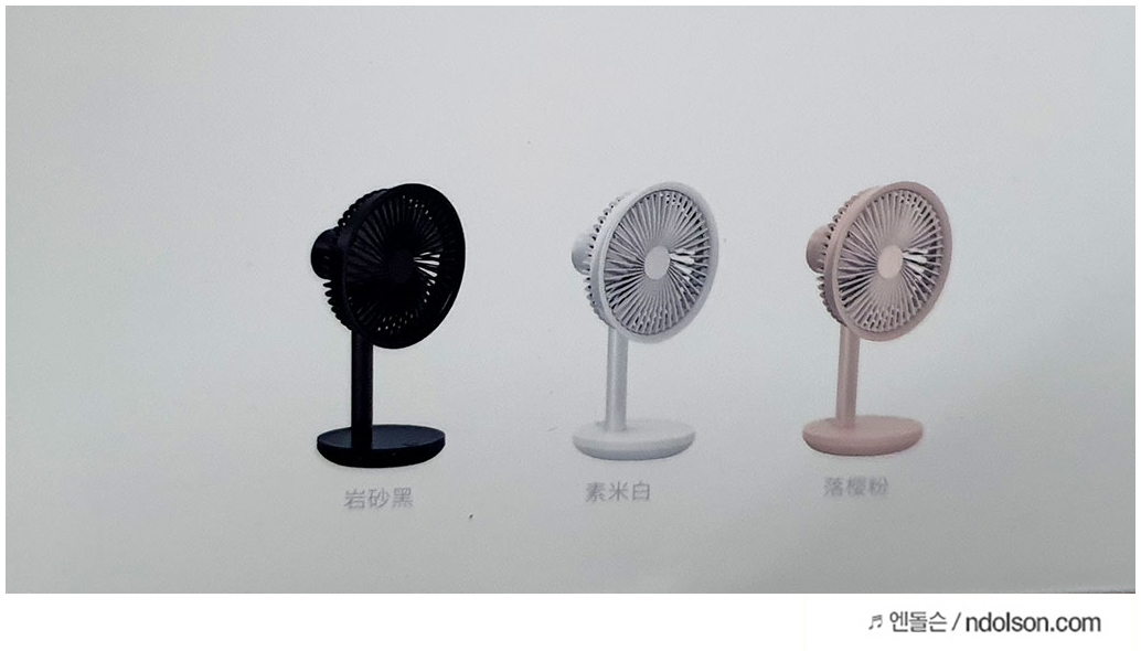 샤오미 탁상용 선풍기 색상은 3가지로 블랙, 화이트, 핑크가 있습니다. 화이트가 가장 깔끔하긴하지만 취향에 따라서 선택하시면 됩니다.