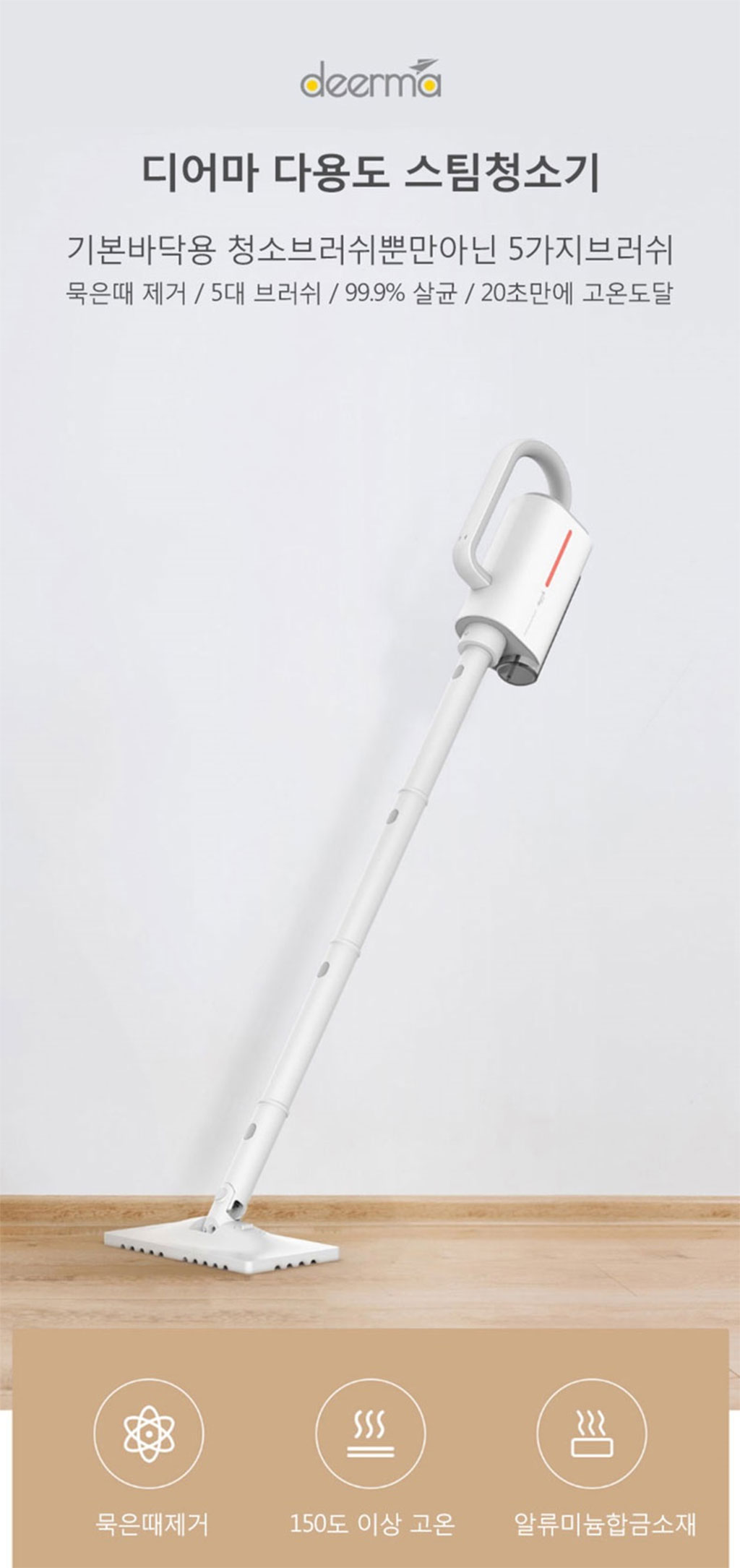 스팀청소기가 좋은 이유는 다들 아실것입니다. 샤오미 디어마 스팀청소기는 150도의 높은 온도의 스팀이 분사된다고 합니다. 묵은때도 잘 벗겨지겠죠.