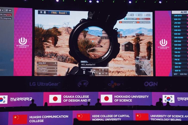 아마 e스포츠 게임채널을 보신 분이라면 특히 더 큰 관심을 보일 것 같은데, 이번에 한국, 일본, 중국, 말레시아 등의 각지의 대학생들이 배틀그라운드 경기를 위해 LG울트라기어 페스티벌에 모였습니다.