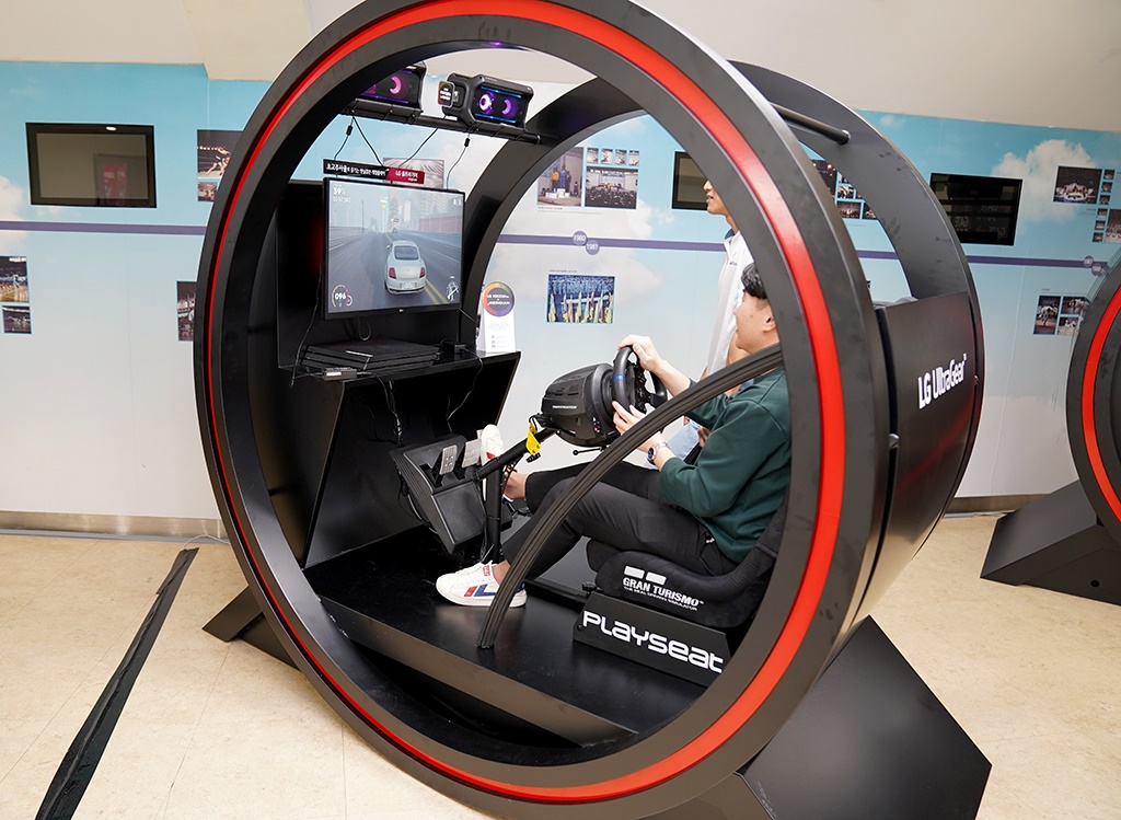 남자의 로망인 자동차 게임 핸들까지 갖춘 부스에는 32인치 LG울트라기어 모니터와 상단에 LG엑스붐Go를 연동해 박진감 넘치는 레이싱 게임을 즐기게 해 두었습니다. 직접 해보니 내 운전실력이 어디로 갔는지 모르겠지만, 생상한 느낌을 들었습니다.