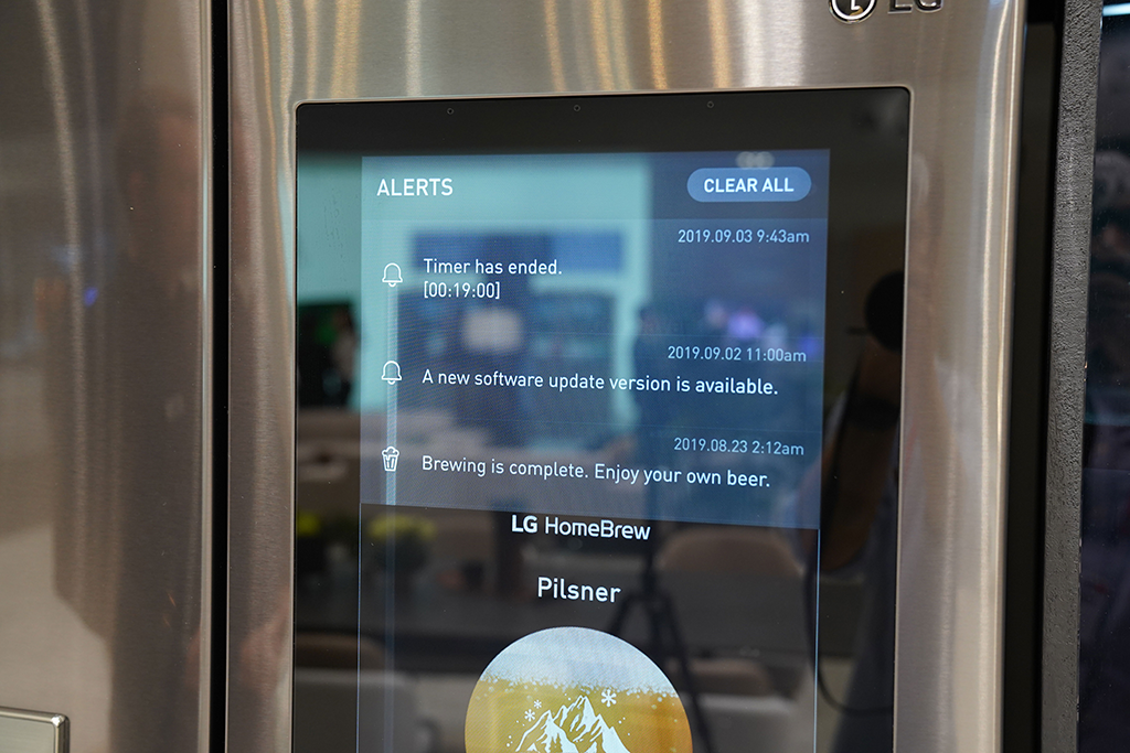 인스타 뷰 냉장고(InstaView Door-In-Door™)를 통해 주방의 모든 가전이 연결되어 정보를 볼 수 있습니다. 오븐 요리가 얼마나 남았는지, LG 홈브루의 맥주가 숙성이 다 되었는지, 식기세척기가 다 되었는 지 알람을 받을 수 있습니다.