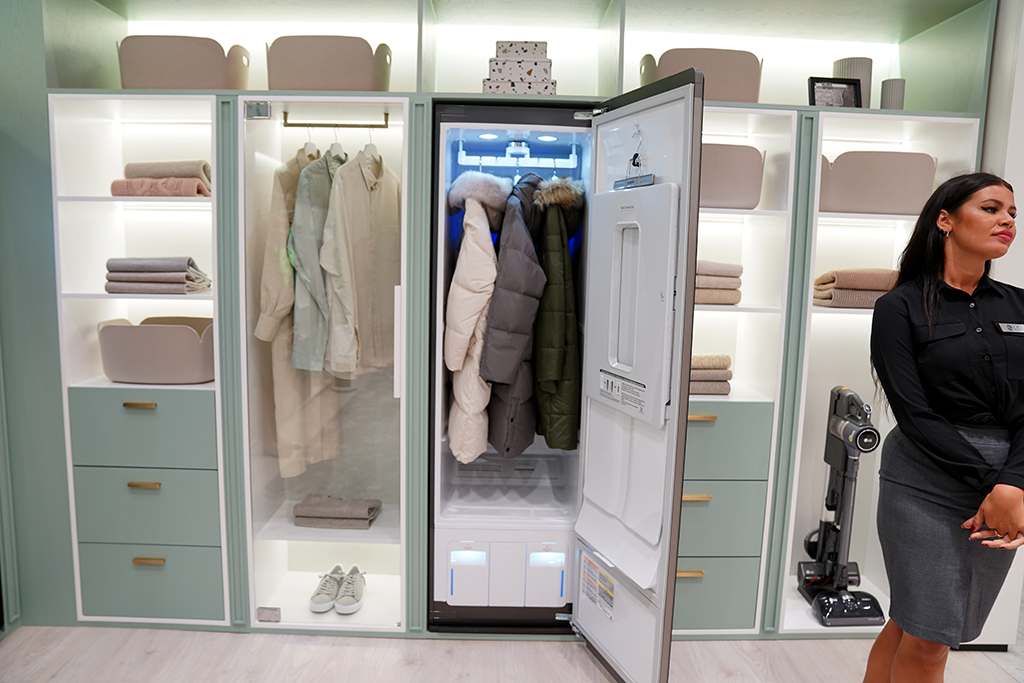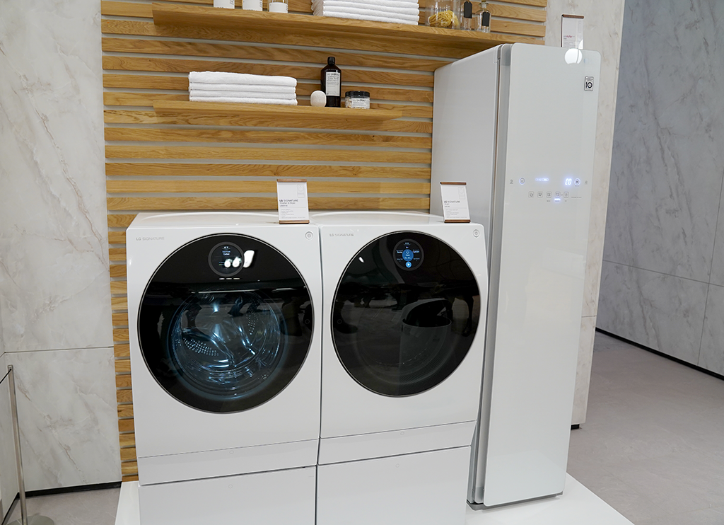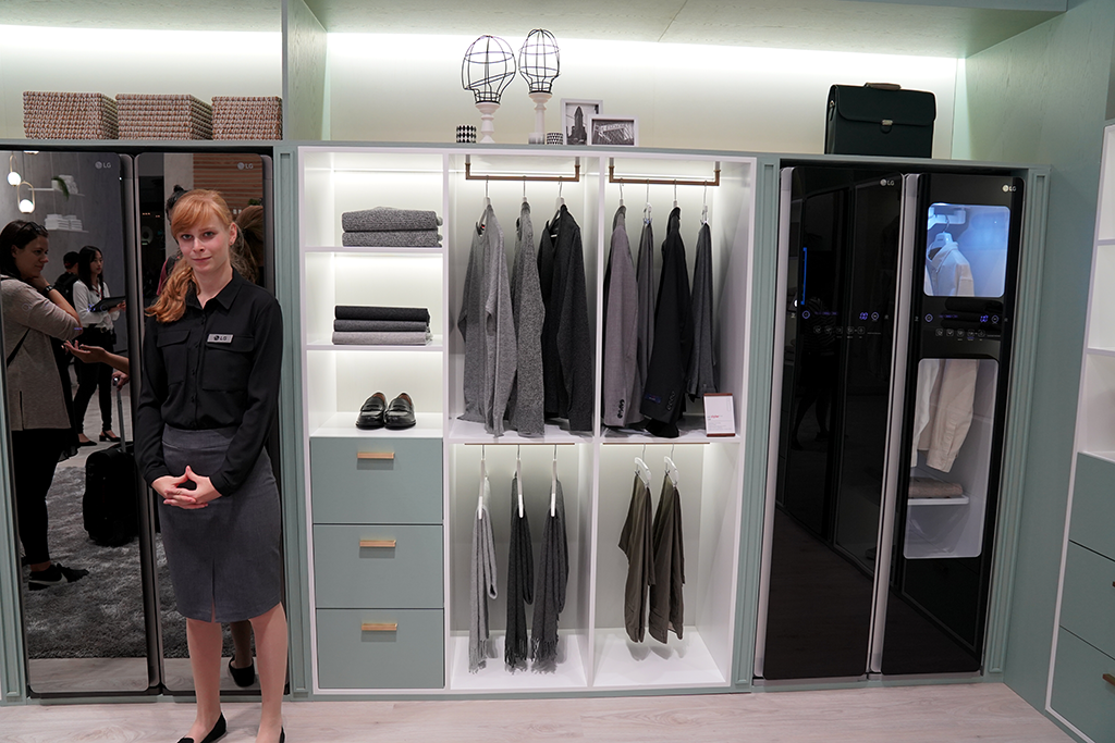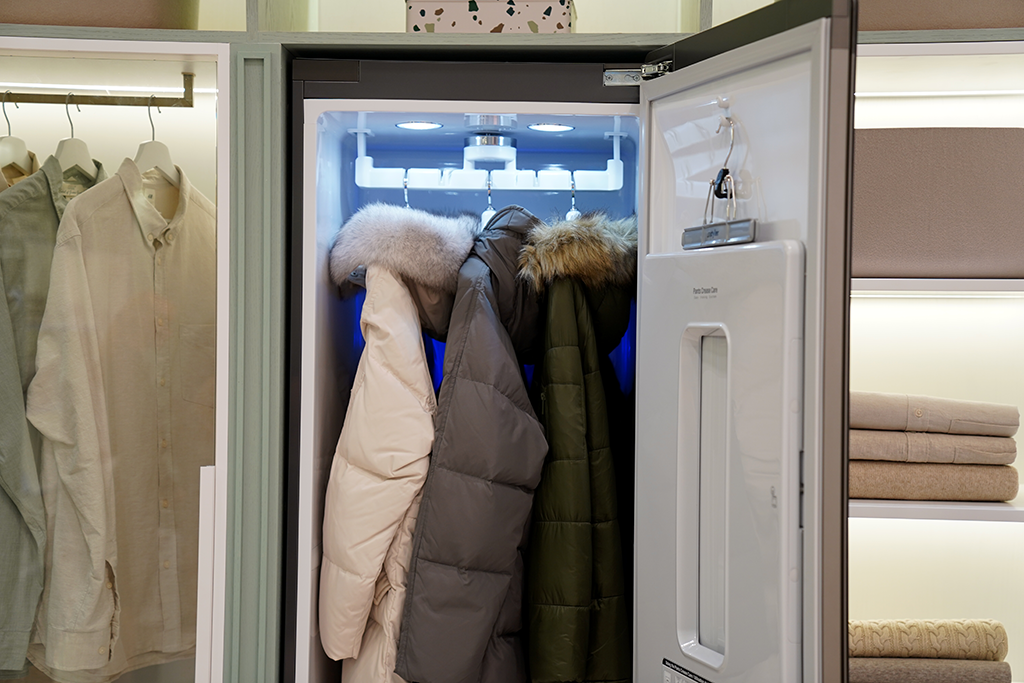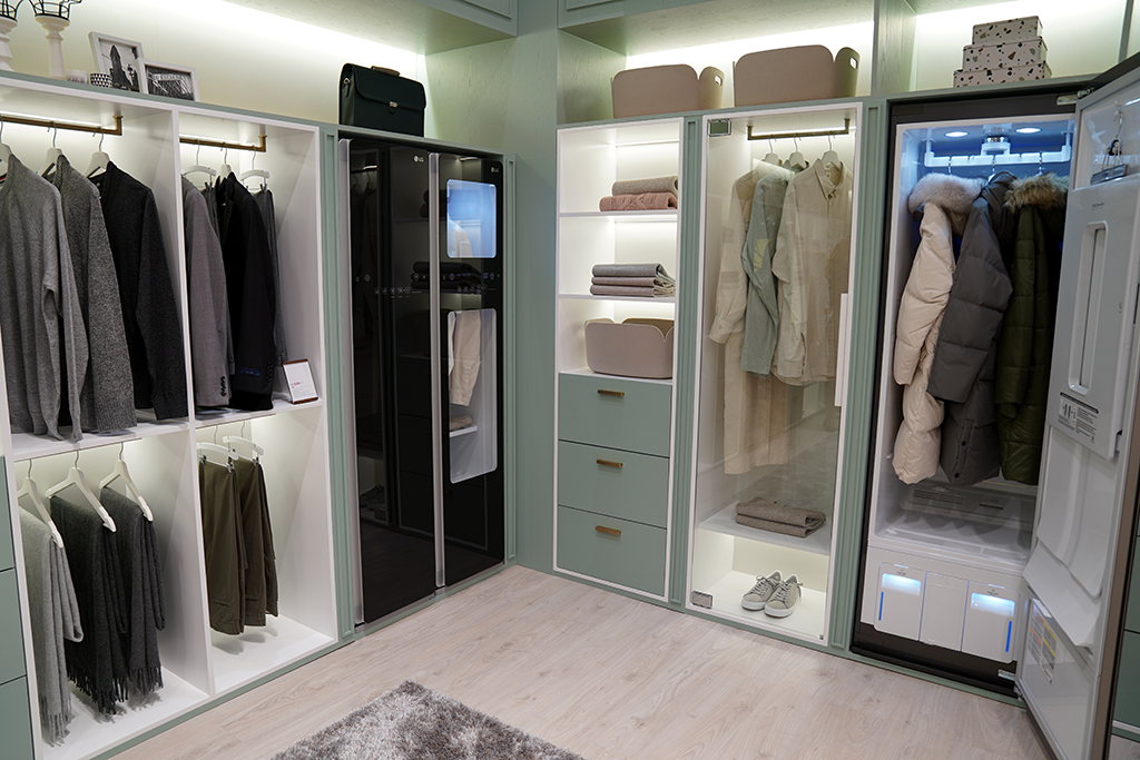 스타일링 룸에서는 의류 관리의 속시원한 해결책을 볼 수 있었습니다. 미세먼지와 땀에 찌듯 옷도 LG 트롬 스타일러에 넣으면 3단계의 의류관리 시스템에 의해 처리되는데요. 1단계 무빙행어와 2단계 트루스팀, 3단계 코스 완료를 통해 항상 깨끗하게 관리된 옷을 입을 수 있게 해줍니다.