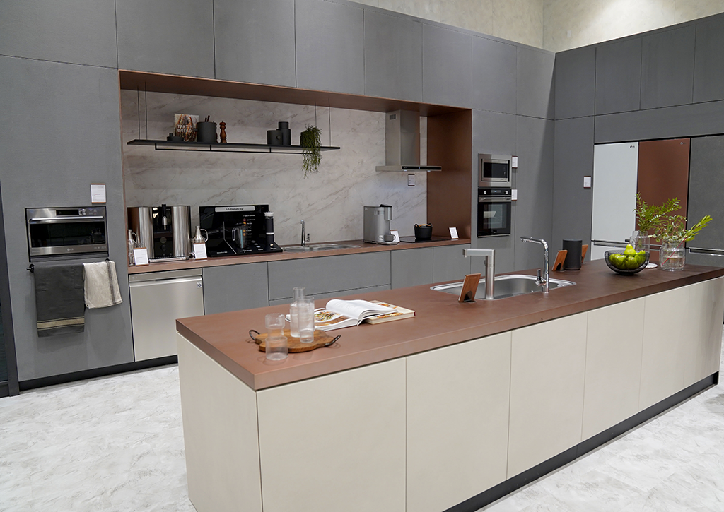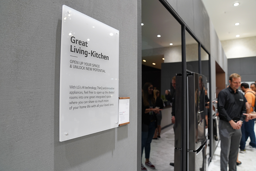 LG홈에는 그레이트 리빙-키친 존과 홈오피스, 홈시네마, 스타일링 룸, 세탁 라운지, 개인 스파 등으로 구성되어 실제 생활공간을 연출해 두었습니다.
