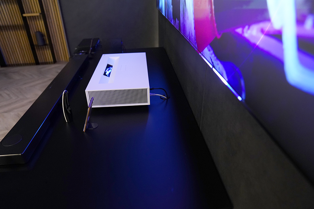 홈시네마 존은 개인의 취향을 반영한 인테리어 공간으로 편안하게 취침을 하면서도 엔터테이먼트를 동시에 즐길 수 있게 꾸며져 있었습니다. LG전자의 LG 시네빔 Laser 4K 프로젝터는 10cm만 띄워도 100인치의 대화면을 구사해줍니다. 4K의 3840x2160 해상도로 즐길 수 있습니다. 2,000,000 : 1 명암비, HDR10 적용으로 섬세하고 깊은 색감 표현이 압도적이었습니다. 로망이었던홈시네마를 구현해 대화면의 감상과 풍부한 사운드를 즐길 수 있는 공간이 되었습니다.