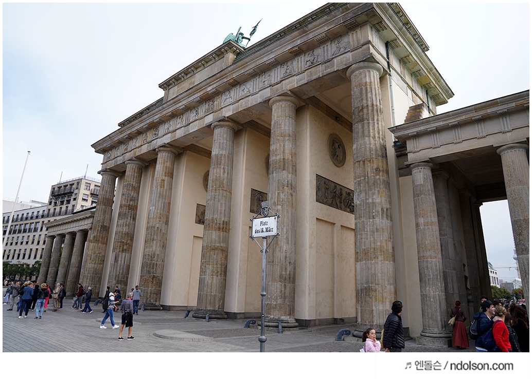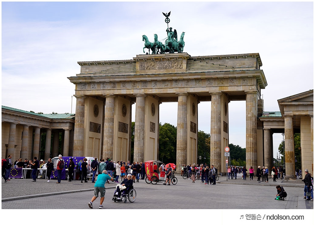독일의 상징이라고 할 수 있는 브란덴부르크문 입니다. 여기서 인증샷만 찍어도 독일 왔다고 인정해주는데요. 브란데부르크문은 독일의 수도 베를린에 있습니다. 프로이센 왕국의 제4대 국왕인 프리드리히 빌헬름 2세의 명을 받아 1788년부터 1791년까지 건설되었고, 건축가는 칼 고트하르트 랑한스(de) 이며, 아테네의 아크로폴리스를 참고했다고 합니다.
