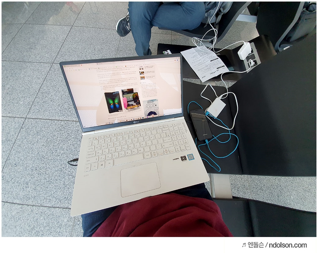 스마트폰의 핫스팟을 열어 데이터 쉐어링을 했습니다. 노트북과 태블릿 및 기타 스마트폰도 테더링해서 모두 사용할 수 있어서 좋았습니다.