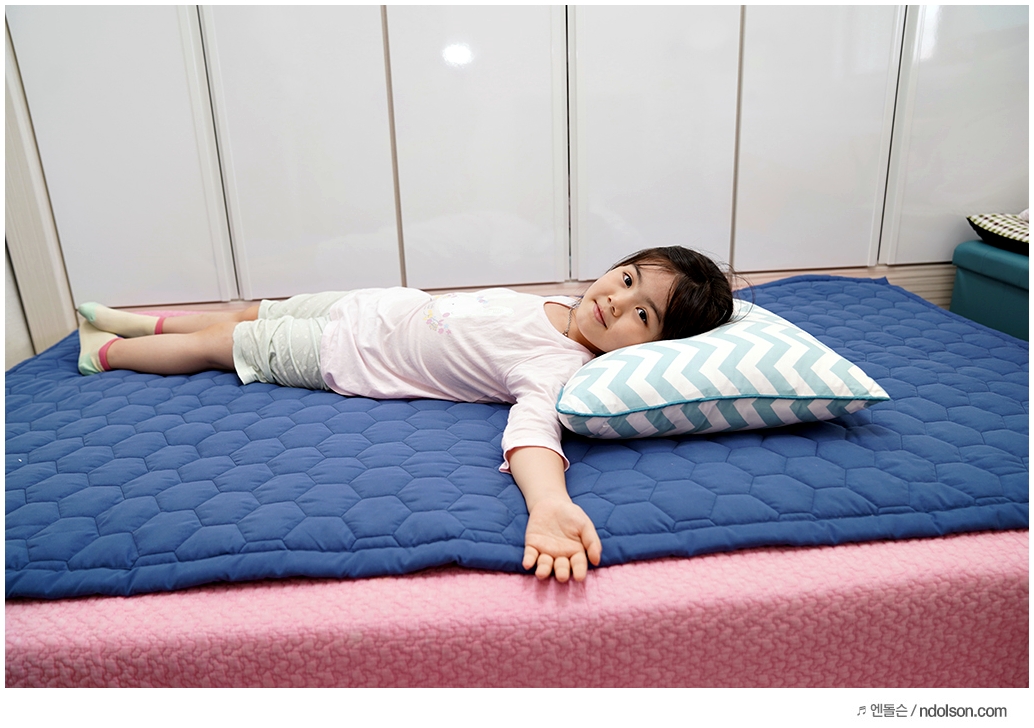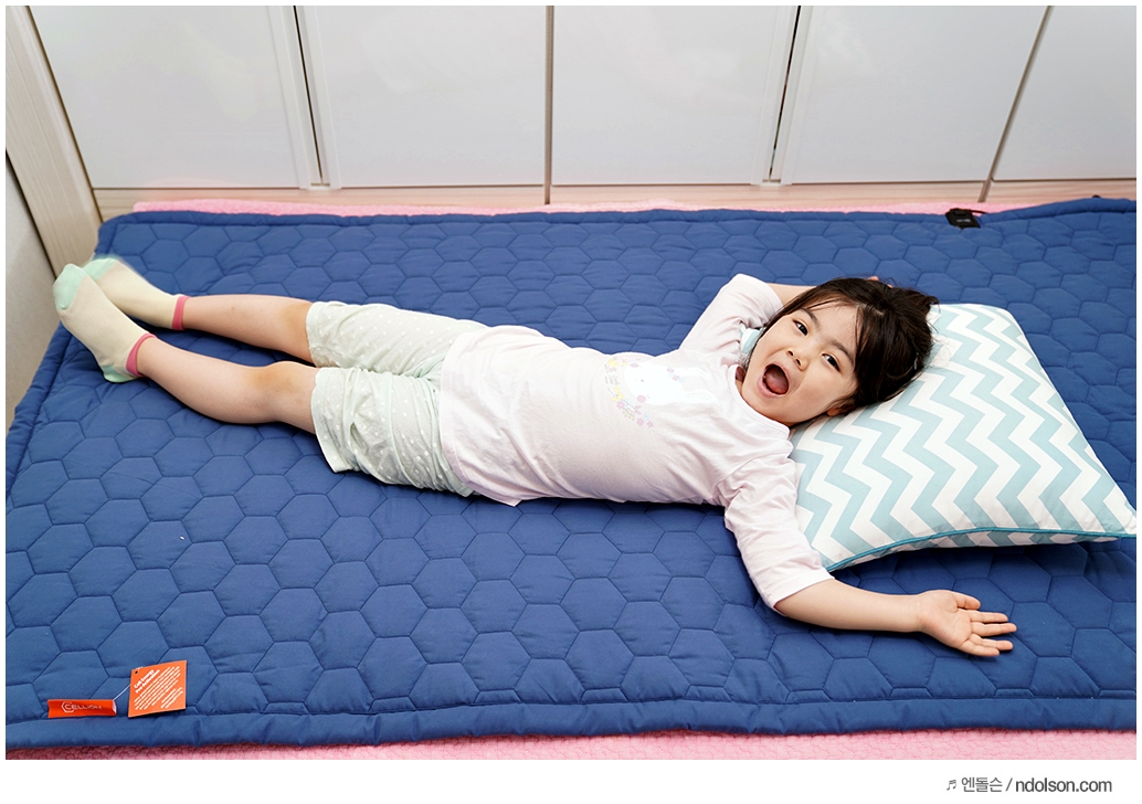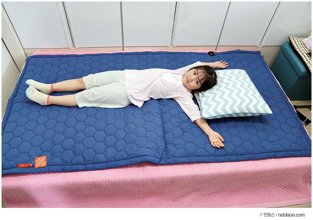 우리 딸아이가 신났네요! 푹신 한가봐요. 침대 위에 올려두고 사용할 수 있게 세련된 디자인으로 출시된 셀리온 전기매트는 침대와 궁합이 좋습니다.