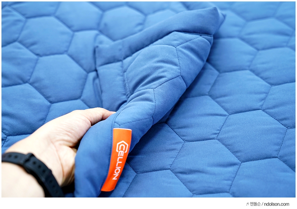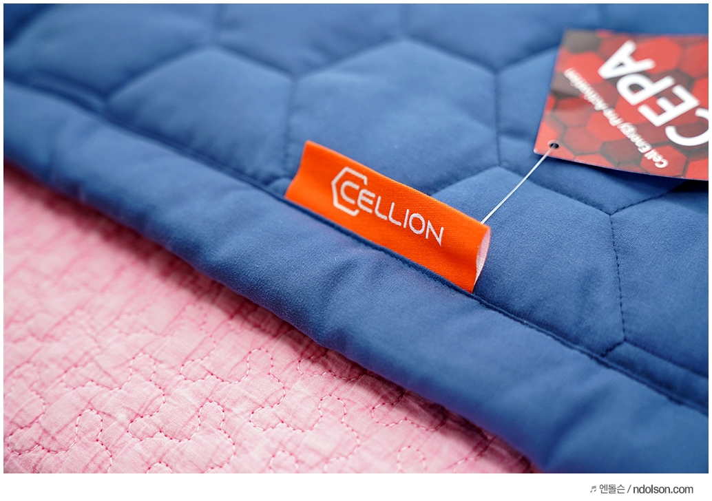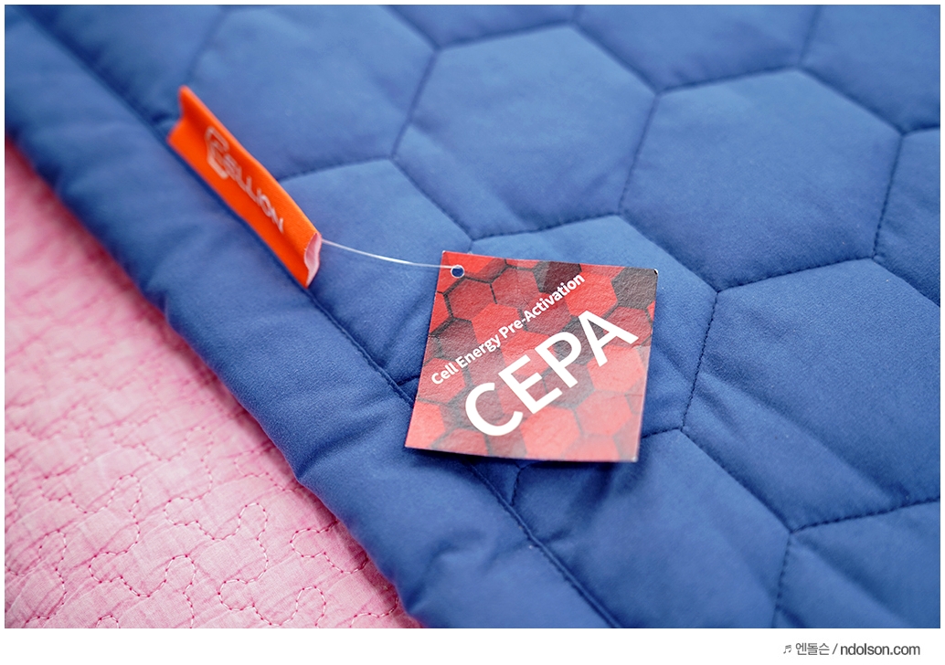 포근하고 건강하게 해주는 CEPA(Cell Energy Pre-Activation) 원단으로 셀리온이 독자 연구개발한 인체친화 기능성 원단이 사용되었습니다. 열을 고속으로 빠르게 전달하고 수면 시 흐르는 땀도 빠르게 흡수하고 건조하는 숨쉬는 소재라고 보시면 됩니다.