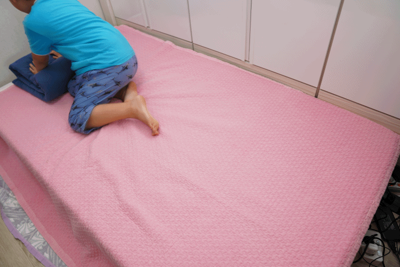 우리 딸아이가 신났네요! 푹신 한가봐요. 침대 위에 올려두고 사용할 수 있게 세련된 디자인으로 출시된 셀리온 전기매트는 침대와 궁합이 좋습니다.