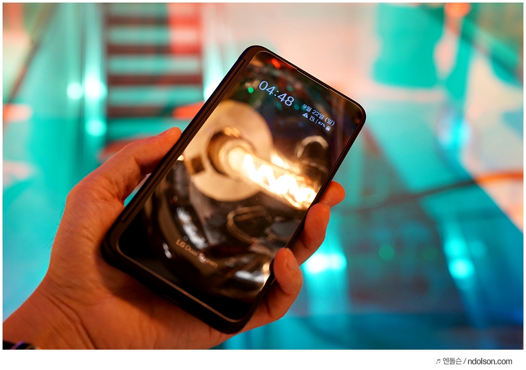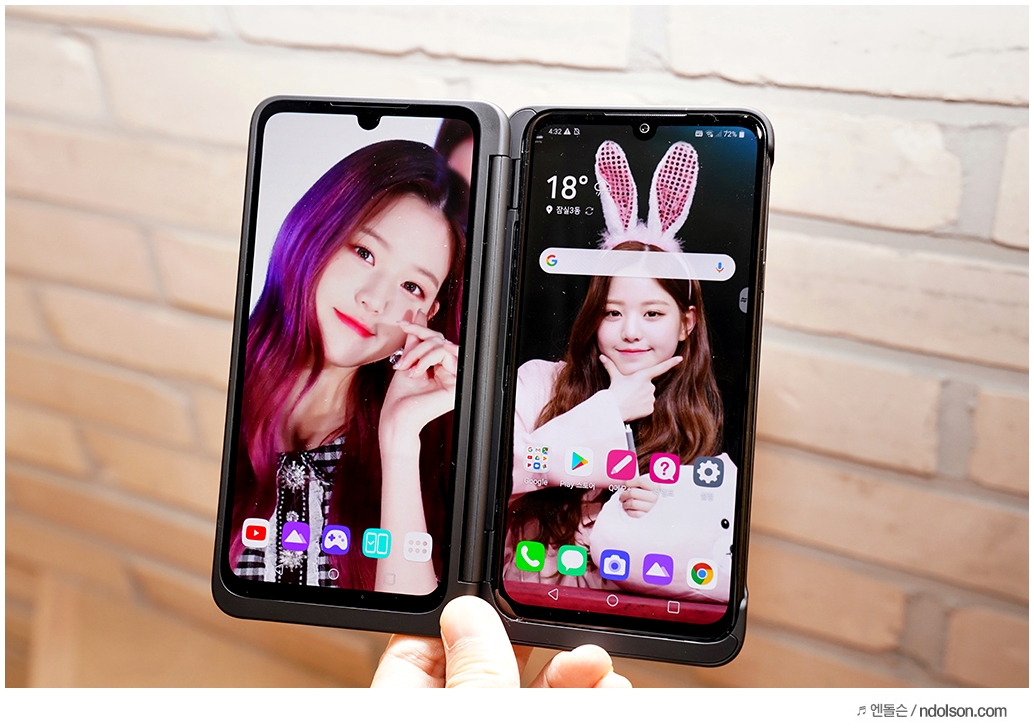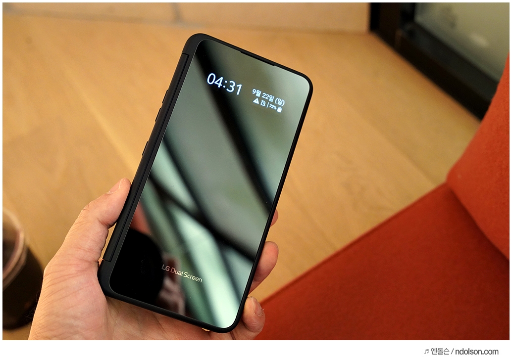 또 새로워진 듀얼스크린에는 6.4인치 OLED FHD+ 19.5:9 디스플레이가 2.1인치형 전면 알람 창이 탑재되어 시간, 날짜, 배터리, 문자, 전화 수신 등의 내역을 확인할 수 있습니다. 이제 LG 듀얼스크린을 열지 않고도 확인이 가능합니다. 기본 10초 켜지면, 옵션을 통해서 끌 수 있습니다.