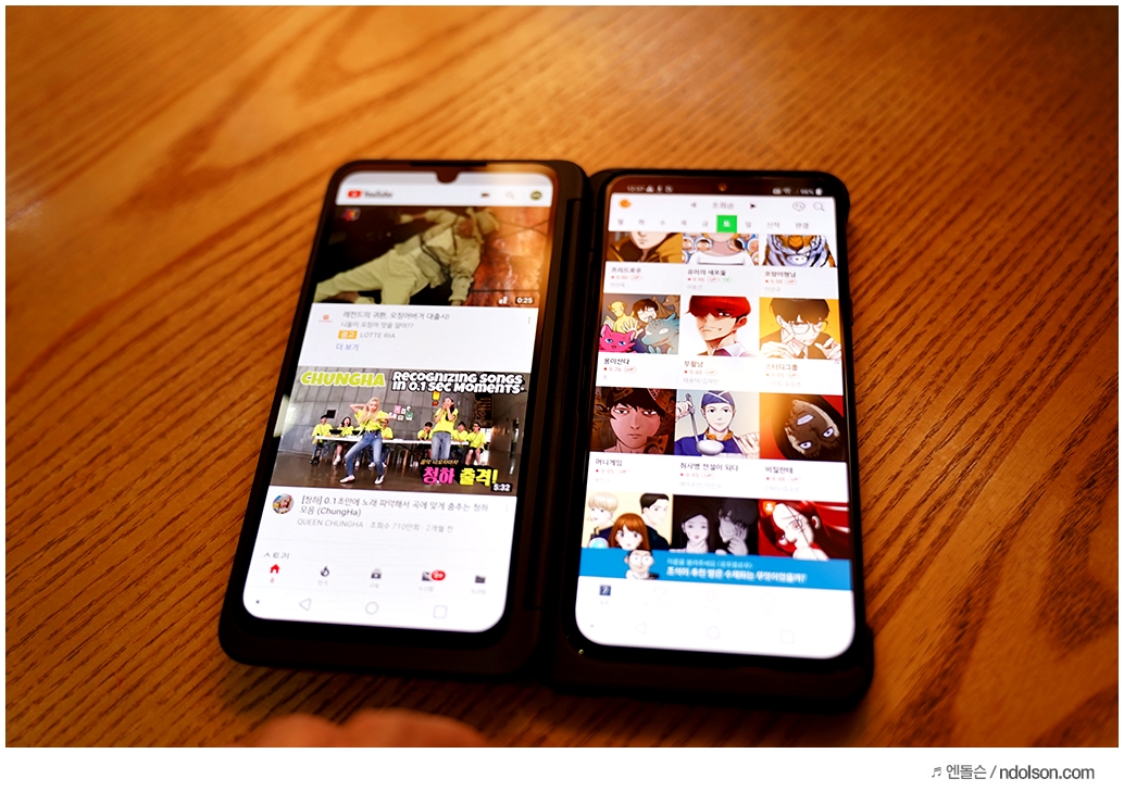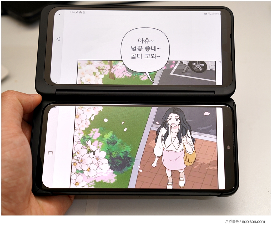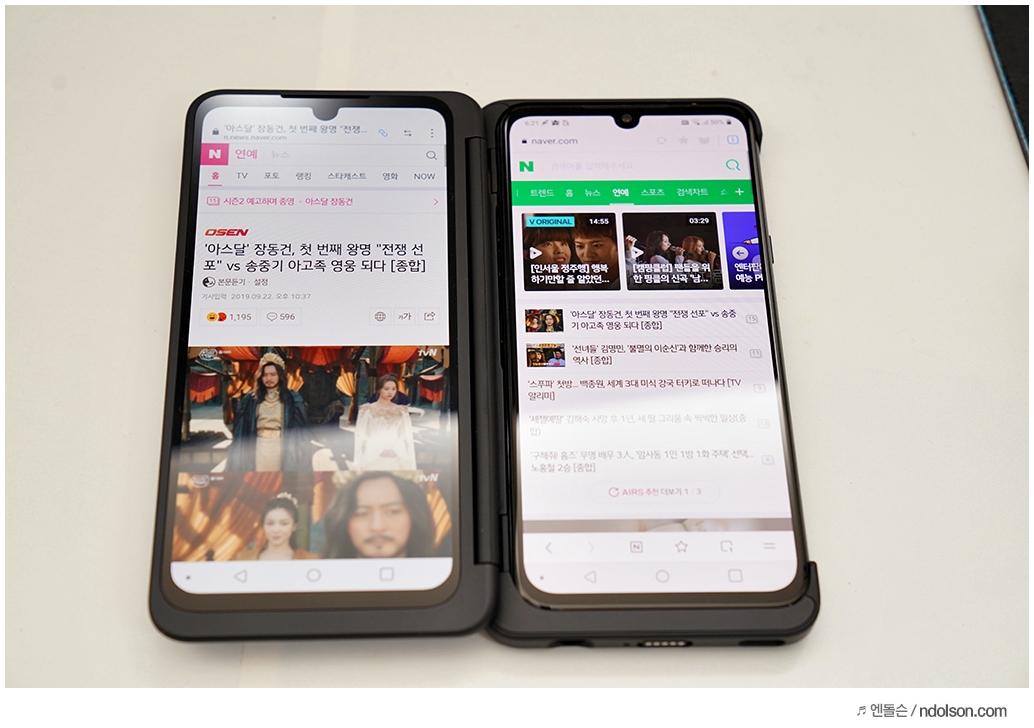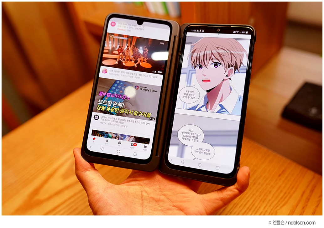V50S 씽큐는 듀얼스크린2와 함께 사용할 때 더욱 멀티태스크 작업을 하기 좋습니다. 그래서 이번에 양쪽 모두 동일한 크기의 디스플레이가 사용된 것이 일체감이 있어 좋습니다.