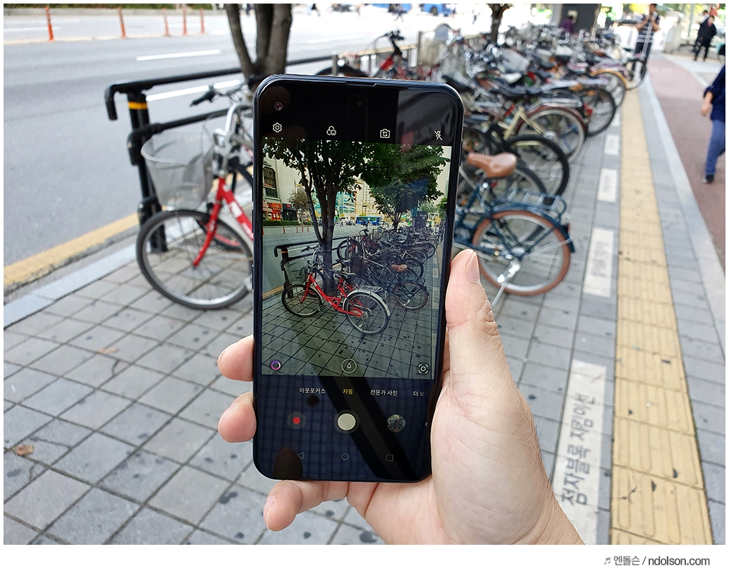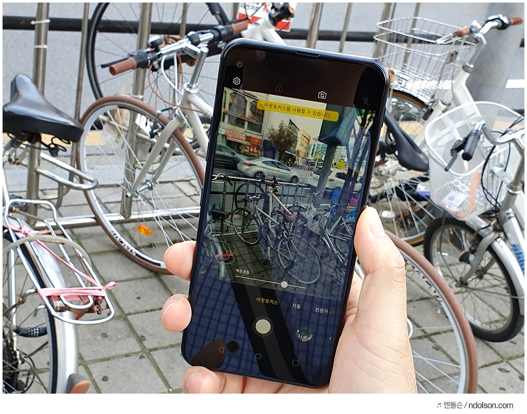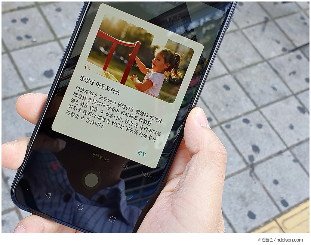 LG Q70 씽큐는 중급기 주제에 동영상 아웃포커스가 가능합니다. 사진/동영상 찍을 때 배경을 흐리게 하는 고급 기능도 쉽게 사용할 수 있다는 점은 좋습니다.