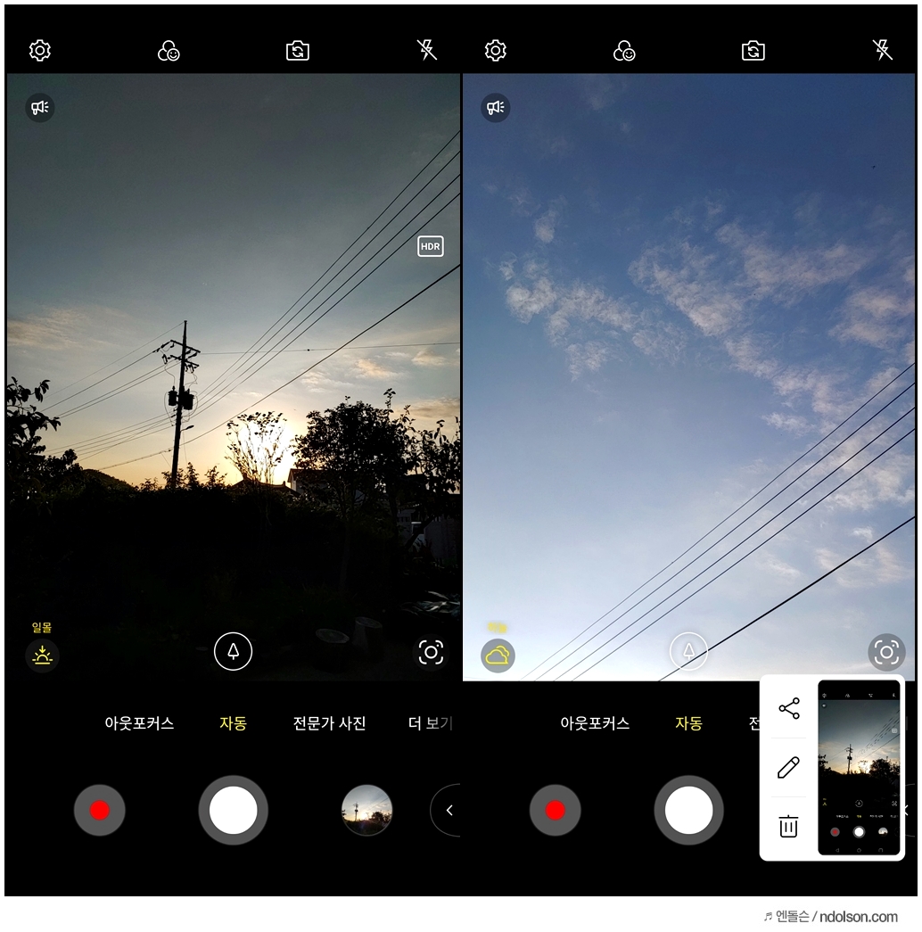 또 AI 화질 최적화 기능을 켜 두면, 장면에 따른 최적화 모드로 자동적으로 촬영해줘서 별도의 모드 설정이 필요 없어 좋습니다.