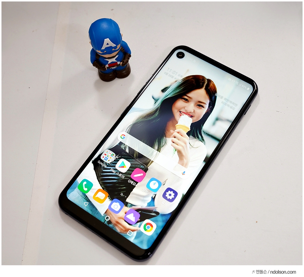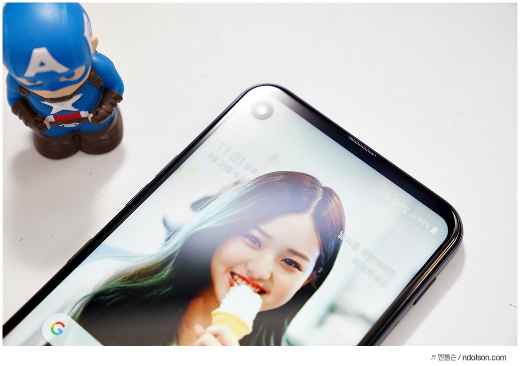 6.4인치의 화면이 보다 크게 보다는 것은 노치 대신 홀인디스플레이(Hole-in-Display)가 탑재되어 있기 때문입니다.