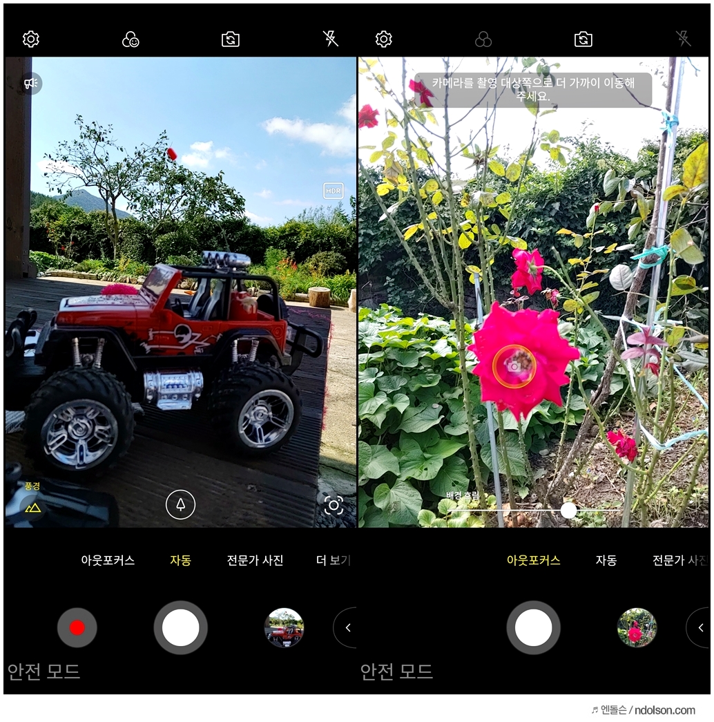 중급기 스마트폰에 프리미엄 카메라 기능을 다수 넣고 가격 절출을 하였다는 생각이 듭니다. 사진, 동영상 아웃포커싱이 가능한 기능을 보면 기능면에서도 좋았습니다.