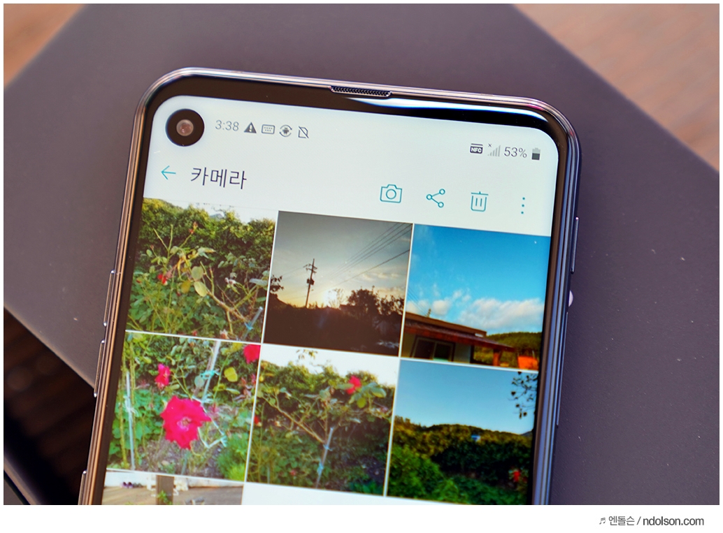6.4인치의 화면이 보다 크게 보다는 것은 노치 대신 홀인디스플레이(Hole-in-Display)가 탑재되어 있기 때문입니다.