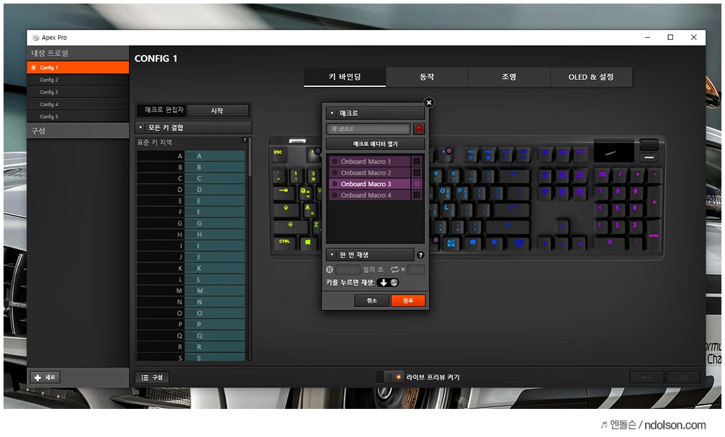 스틸시리즈 엔진 프로그램에서는 키에 따른 매크로 매핑과 관리를 할 수 있습니다.