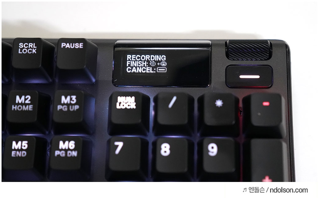 우측 상단에 OLED 화면에 녹화 취소나 종료하는 키에 대한 설명을 해줍니다. 지금은 키보드 매크로 녹화 중!