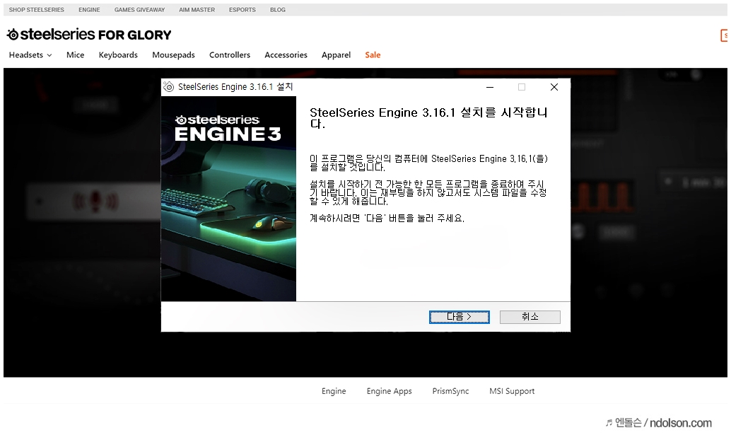 또 키보드관리를 위해서 스틸시리즈 엔진 S/W를 설치합니다.