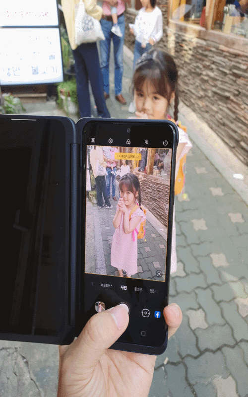 누군가 나를 찍어주는 셀카라면 내가 내 모습을 못 봐서 어떤 표정을 지어야 할지 모르겠는데요. V50의 듀얼스크린 미러모드를 쓰면 셀카를 찍히는 사람도, 찍는 사람도 동시에 화면을 볼 수 있습니다.