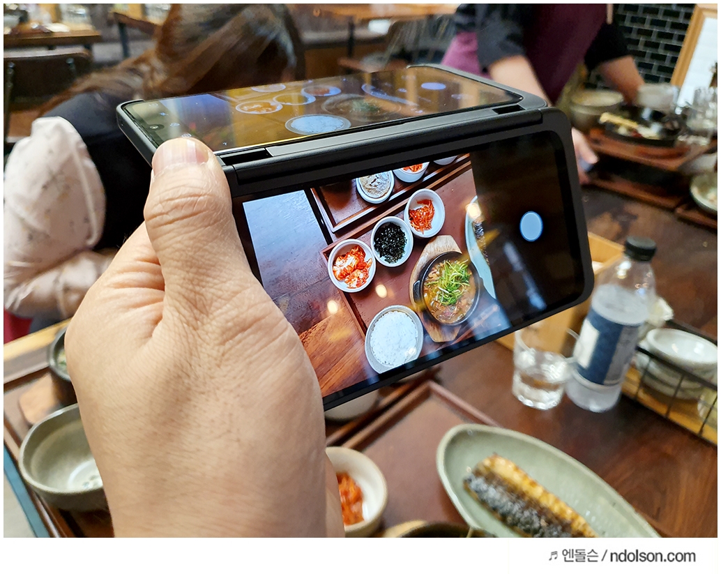 또 음식 사진의 정석인 항공사진도 듀얼스크린으로 하이앵글에서 쉽게 보면서 촬영이 가능합니다.