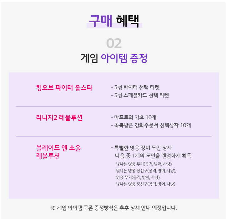 또 LG V50S 씽큐 구매혜택으로 새로워진 듀얼스크린과 게임아이템을 받을 수 있습니다. 킹오브 파이터 올스타와 리니지2 레볼루션, 블레이드 앤 소울레볼루션 게임의 아이템을 받을 수 있으니 좋겠죠. 사은품 신청은 앱에서 신청하면 됩니다. 그럼 사전예약으로 새로워진 듀얼스크린을 만나보세요!