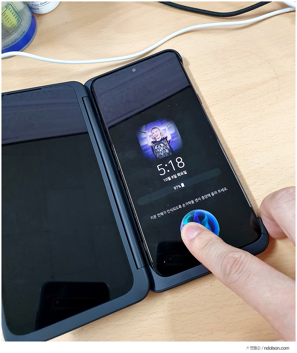 이렇게 V50S 씽큐의 전면에 손가락을 가져가면 잠금해제가 됩니다. 간편하죠?