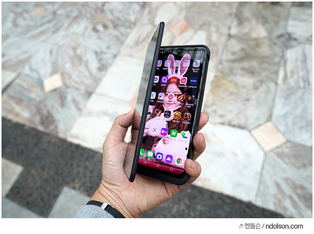 이번에 듀얼스크린의 사이즈도 V50 씽큐 사이즈도 모두 동일하게 6.4인치로 적용되었습니다. 그래서 듀얼스크린를 펼치면 양쪽이 동일감있는 화면이라 더 좋습니다.
