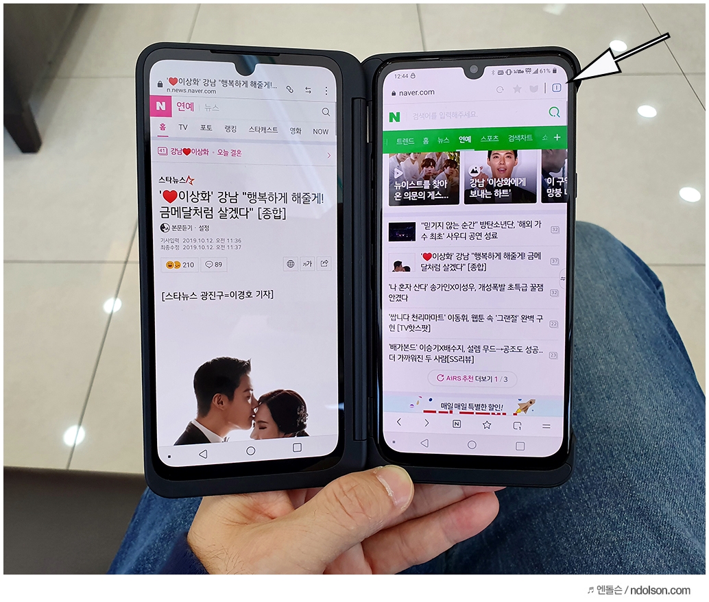 이렇게 가로로 보면 화면이 평소보다 더 크게 보입니다. V50S 듀얼스크린이 있으면 웹툰뿐 아니라 웹사이트도 큰 화면으로 눈 아프지 않게 볼 수 있다는 건 큰 장점입니다.