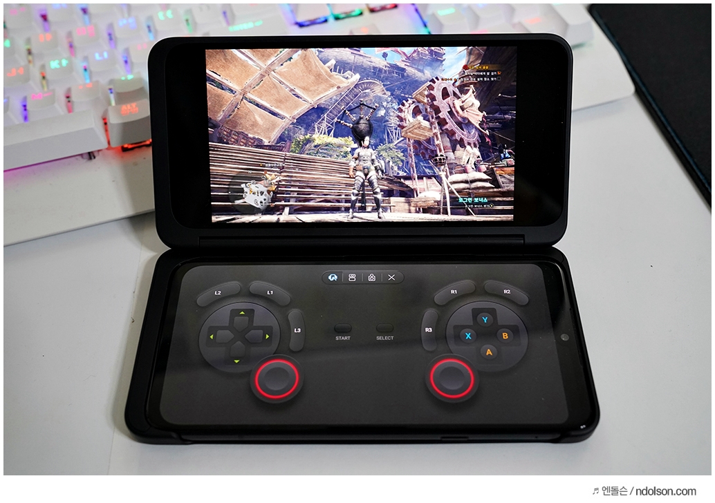 지포스 나우는 듀얼 앱을 지원하는데요. V50S에서 게임패드를 불러내서 게임이 되었습니다. 이제 스마트폰으로 PC게임을 손쉽게 즐겨볼 수 있다는 게 놀랍죠?