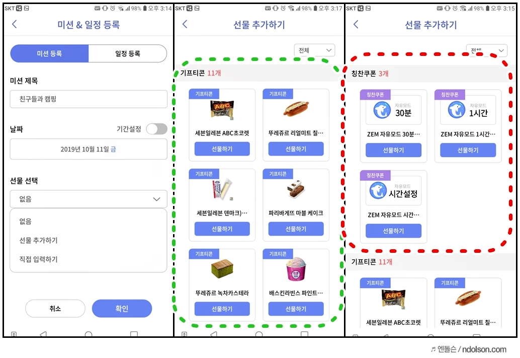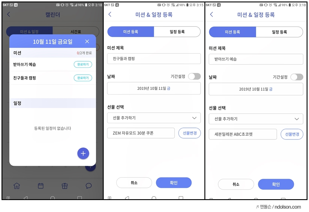 자녀의 미션 등록과 일정관리를 할 수 있는데요. 이번에 친한 애들끼리 캠핑을 간다고 해서 일정 등록을 하였습니다. 또 받아쓰기 시험 대비해서 예습을 해야 하는 데, 선물이나 자유시간을 줄 수 있습니다.